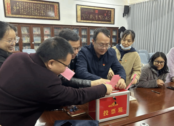 2025年11月14日,教工第一党支部召开党员大会换届选举,应到有选举权党员19名,实到18名,符合法定人数。党员们严格按程序无记名投票和差额选举。选举后,新一届委员会召开第一次全体会议,刘洋任党支部书记,江泽方任组织委员、屠礼芬为宣传委员、彭珊为纪检委员。新一届委员会表示将传承优良传统,结合教学科研实际创新工作方法,提升党支部凝聚力、战斗力,为学院发展提供政治保障。