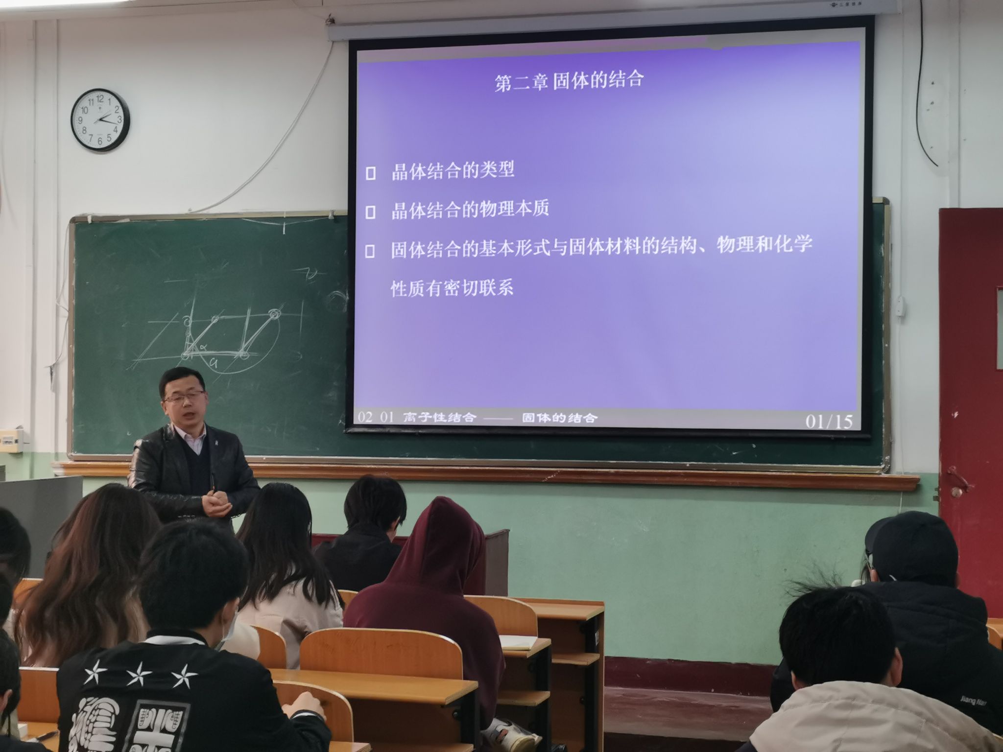 首场活动于2024年3月25日下午在教1-202教室进行,是由物电学院物理系聂长江老师讲授教学示范课。聂老师曾获学校教学竞赛二等奖,主讲量子力学和固体物理,有着丰富的教学经验,教学效果获得学生一致肯定。本节课聂老师向学生讲解《固体物体》第二章“固体的结合”相关内容。教务处林宏副处长,物电学院周传璘副院长、李钱光副院长,教学督导陈知红老师以及部分青年教师参与公开课观摩活动。课后,老师们就本堂课的课堂效果、优良得失进行了热烈而深入的交流研讨。