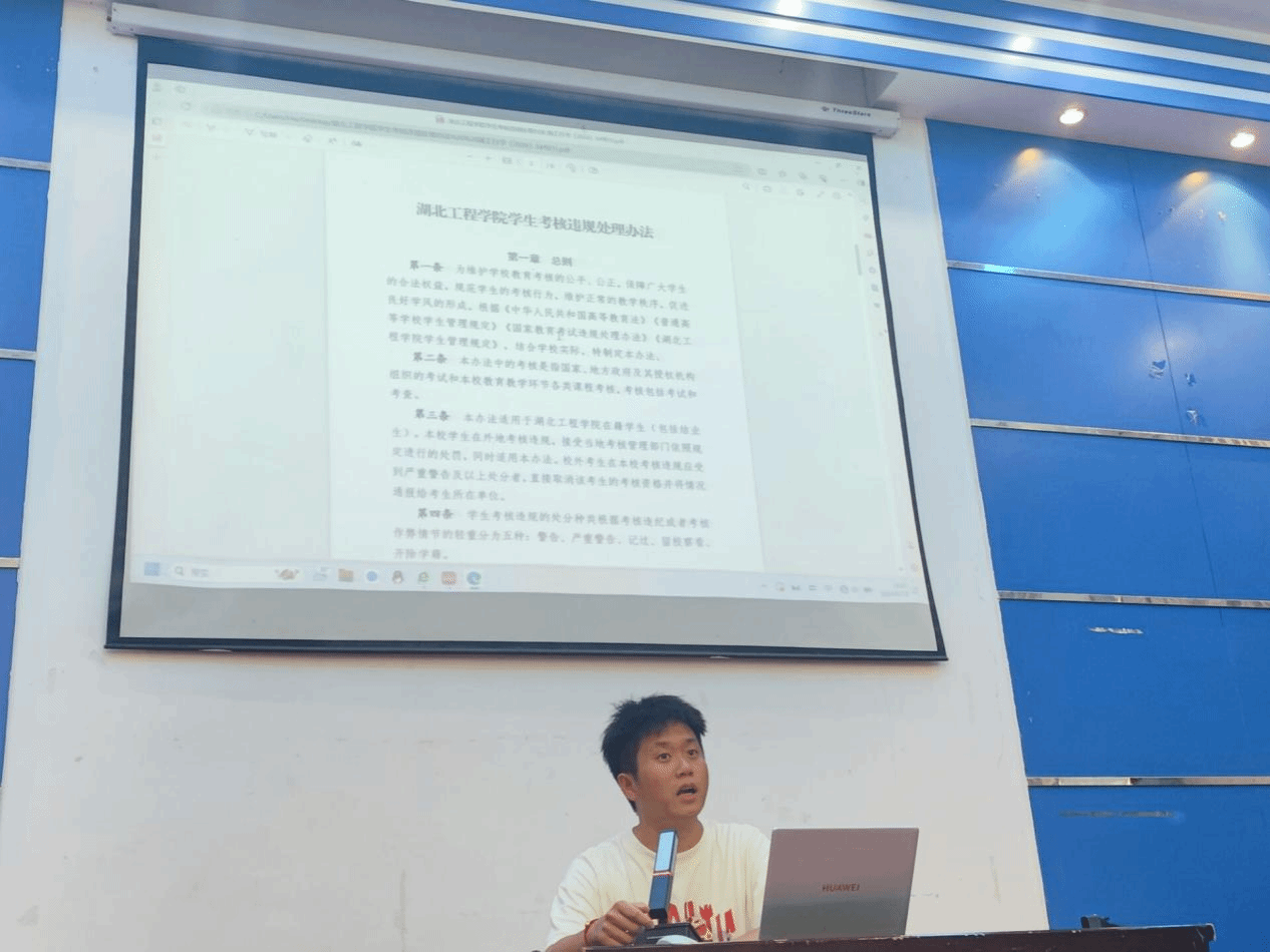 期末考试临近,为严肃考风考纪,物电学院于2024年6月23日以班级为单位集中开展了期末考试考风考纪专题教育,各班班主任老师组织学生学习《太阳成集团tyc7111学生学籍管理办法》(湖工行字(2023)69号)《太阳成集团tyc7111学生考核违规处理办法》(湖工行字〔2024〕34号)等材料,教育引导学生认真备考、诚信参考。