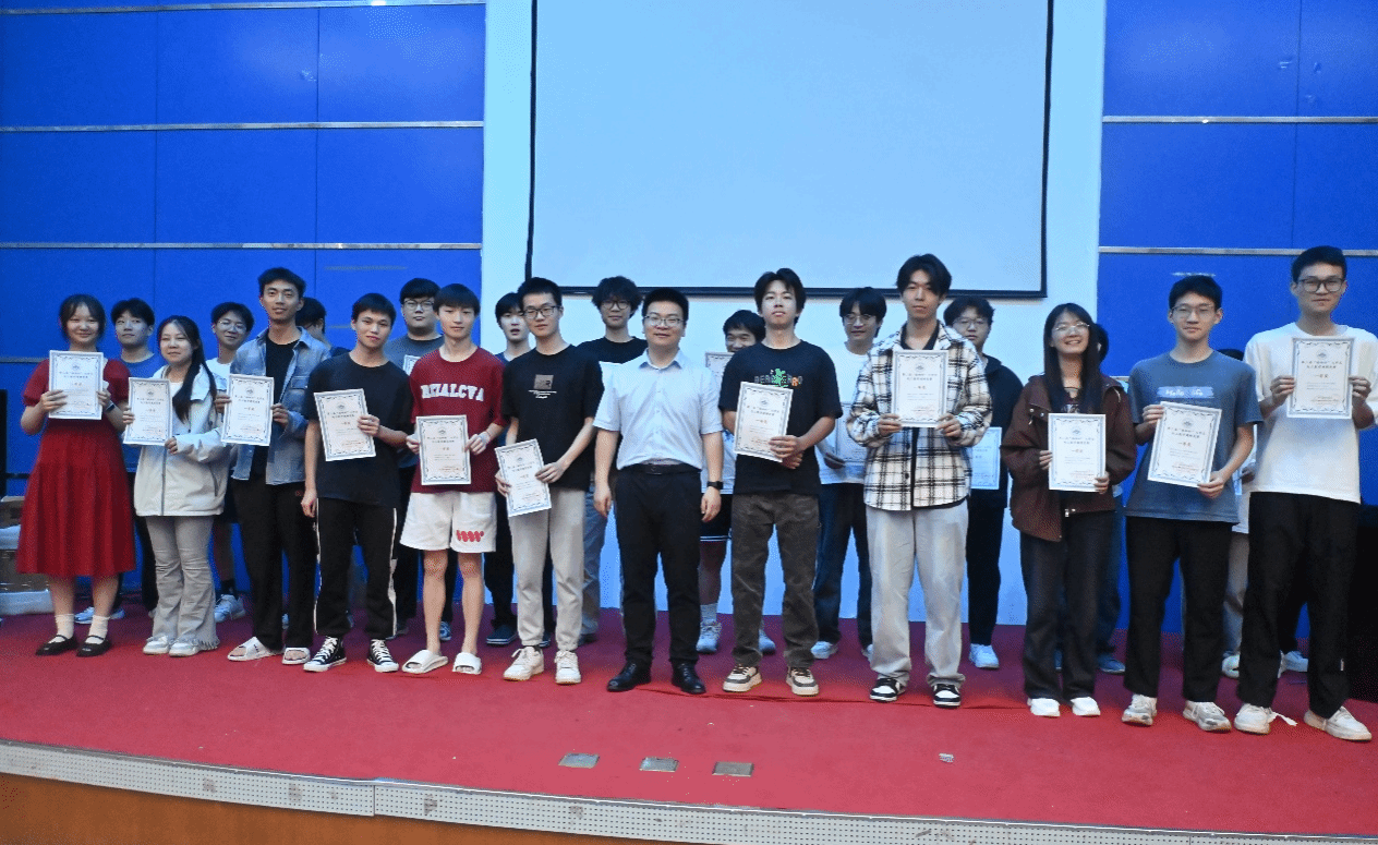 颁奖典礼上,江泽方老师作为主持人,向所有参与本次数学建模大赛的同学表达了诚挚感谢与高度赞扬。他目光坚定、满怀期许地表示:“在此次校赛中,同学们展现出了扎实的专业素养和勇于创新的精神风貌。希望表现优异的同学们能够继续保持这份热情与专注,积极投身到后续的省赛备战中。数学建模领域广阔无垠,是大家施展才华、实现梦想的重要舞台,期待大家在省赛中再接再厉、再创佳绩,为学校争得荣誉!”这番话语掷地有声,让在场同学深受鼓舞,现场斗志昂扬的氛围达到了高潮。随后,江泽方老师亲自为获奖同学颁发证书及奖品,现场掌声雷动,热烈的氛围将同学们的喜悦与自豪之情烘托得淋漓尽致。