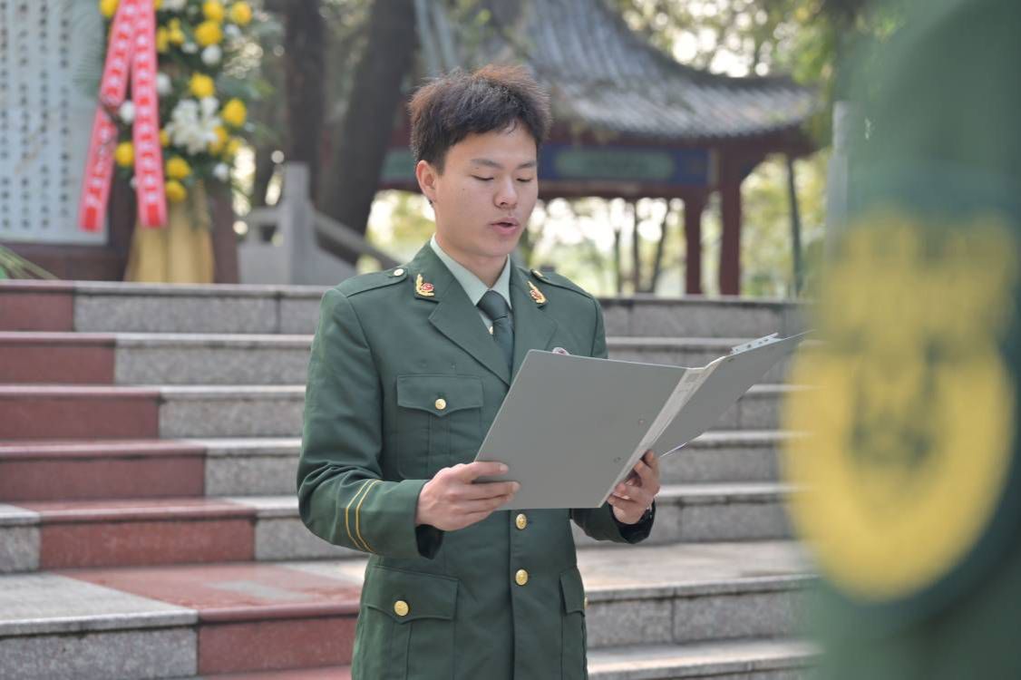 在祭扫仪式的过程中,由物电学院优秀退役大学生聂玉宝对革命烈士致以悼词,引导大家永远铭记、尊崇一切为国家和民族作出牺牲和贡献的革命烈士,树立牢固的为中华民族伟大复兴的中国梦而努力奋斗的理想信念。