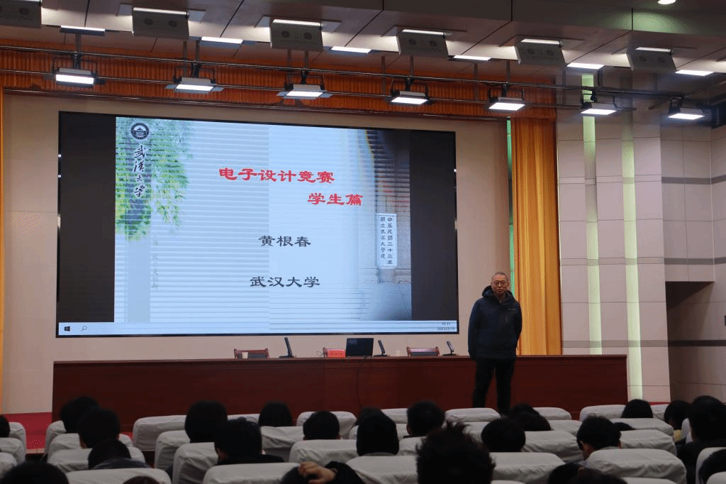 2月19日上午,我院有幸邀请到全国大学生电子设计竞赛湖北赛区专家组组长易本顺教授、武汉大学田茂教授和武汉大学电子设计竞赛总教练黄根春教授,在图书馆报告厅和格物楼会议室为我院师生进行电子设计竞赛指导讲座与座谈会。