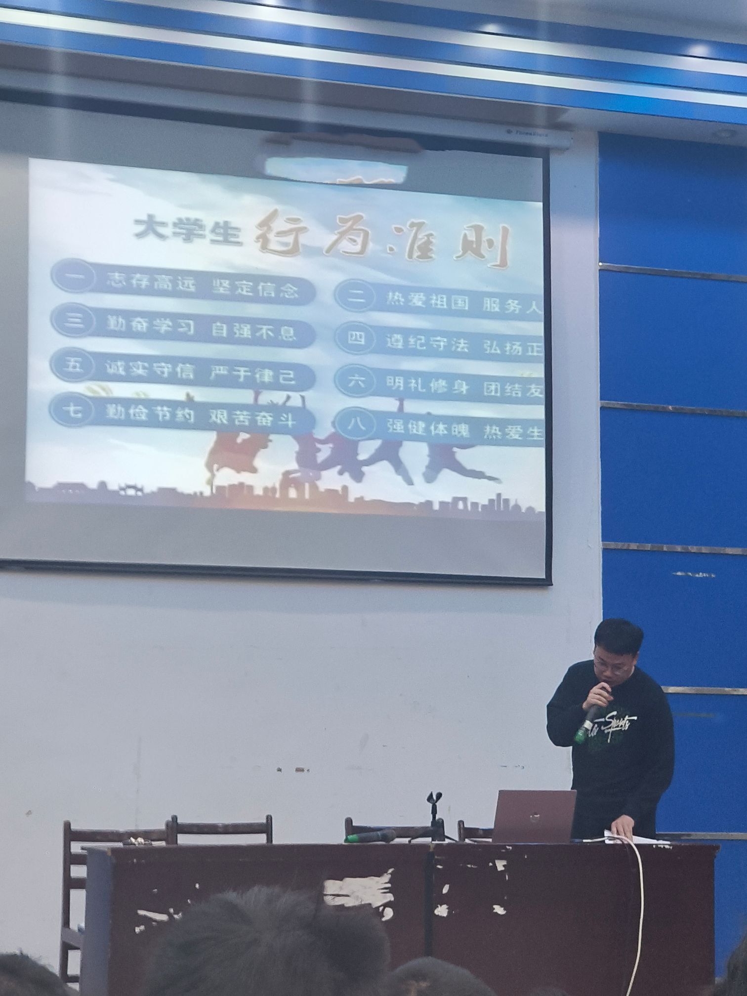 2023年4月2日,我院利用周日晚点评时间开展《高等学校学生行为准则》和《学生手册》校纪校规相关内容的教育,各班班主任引导学生学习、了解学生行为准则具体内容。诸如勤奋学习、自强不息在于教会学生无论是现在还是以后,遇到麻烦问题都要自己寻找解决的途径,并且拥有一颗强大的内心去面对一切困难;明理修身,团结友爱致力于教会学生遵守社会公德,弘扬传统美德,学会团结合作等。