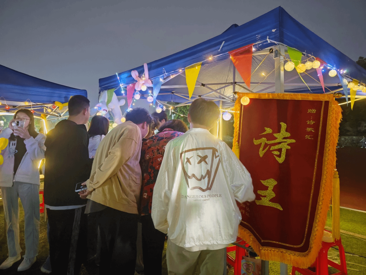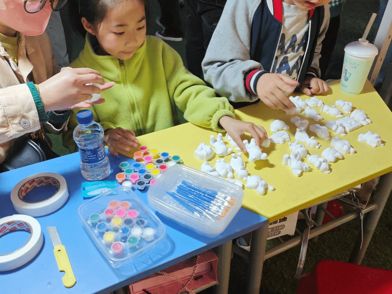 其中,石膏绘画与诗歌背诵尤为受欢迎,不仅有同学们的踊跃参与,还吸引了大量小朋友的目光,同学们和小朋友的火热参与,将夜市活动的氛围推向了高潮。