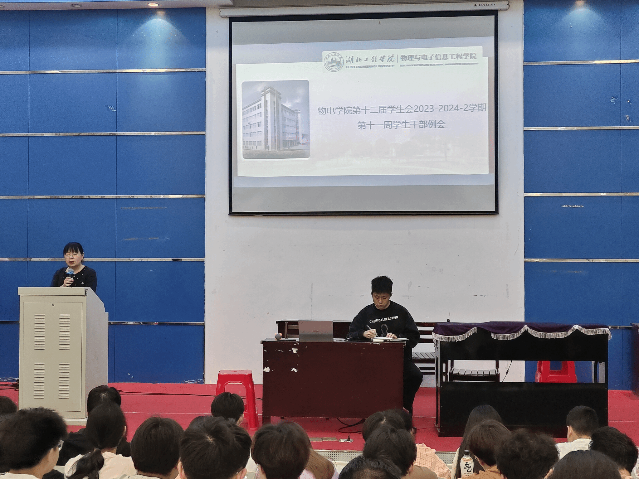 (通讯员 祝阳)5月6日,物电学院于格物楼报告厅隆重召开了第十一周学生干部例会。院党委书记来秀明、辅导员彭宇航以及全体学生干部出席了此次会议,共同回顾了上周的工作成果,并对接下来一周的工作重点进行了部署。本次会议由学生会秘书处刘国成担任主持。