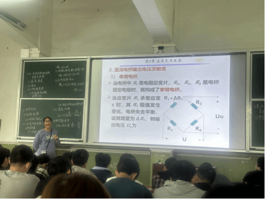 本次公开课由物电学院孟久灵老师主讲,主题为“传感器原理”--应变式传感器。课堂上,孟老师深入浅出地讲解了电阻应变片温度误差的成因及补偿方法,并巧妙融入课程思政元素,通过讲述传感器技术在国家发展中的关键作用,激发学生的爱国情怀与科技报国志向,让专业知识与思政教育相得益彰。