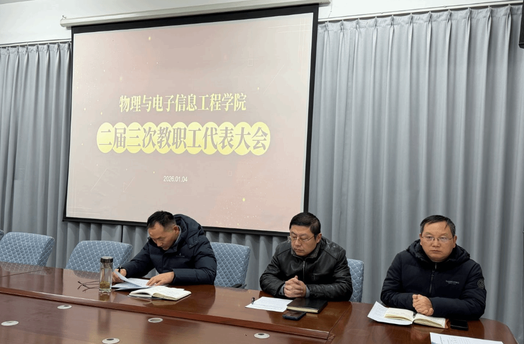 百舸争流启新程,凝心聚力促发展。2026 年 1 月 4 日下午,tyc7111cc太阳成集团(以下简称 “物电学院”)二届三次教职工代表大会在学院二楼会议室召开。学院党政领导班子成员、教职工代表出席会议。大会由学院党总支书记石钧主持,严格遵循民主程序,全面总结过往工作,科学谋划未来发展蓝图。