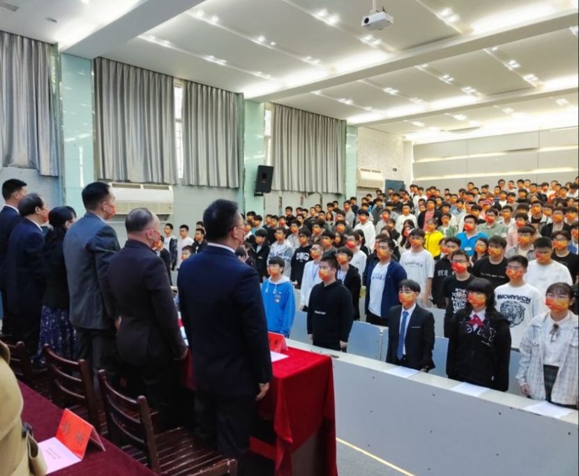 在雄壮的国歌声中,2022级新生开学典礼拉开帷幕。