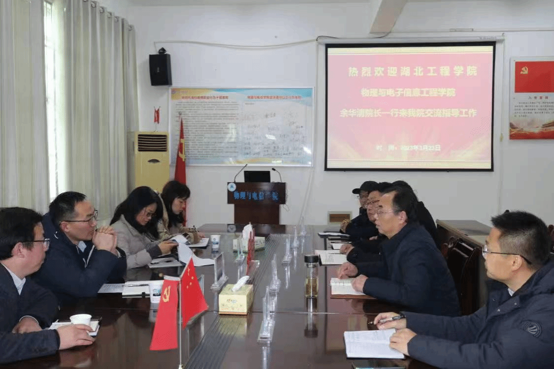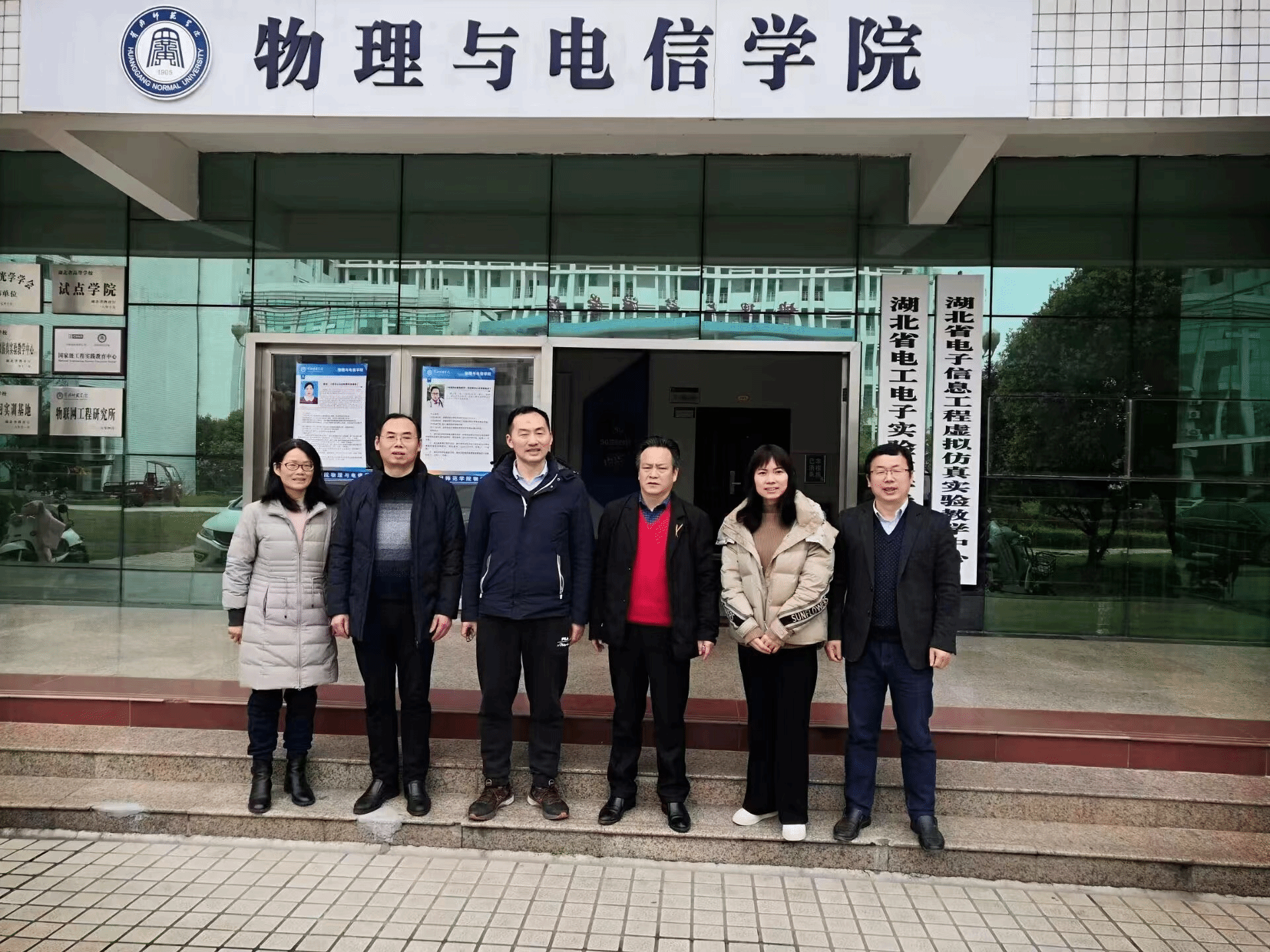 本网讯 3月23日,院长余华清教授带队前往黄冈师范学院就物理学师范专业认证、物理学实验室建设、大学物理公共课教学等工作进行调研学习与工作交流。物理系系主任聂长江副教授,物理学专业负责人张秀教授、大学物理课程负责人陈知红副教授一起参与调研学习。黄冈师范学院物理与电信学院党委书记杜杰 、副院长丁如春代表黄冈师院对我院的到访表示热烈欢迎。