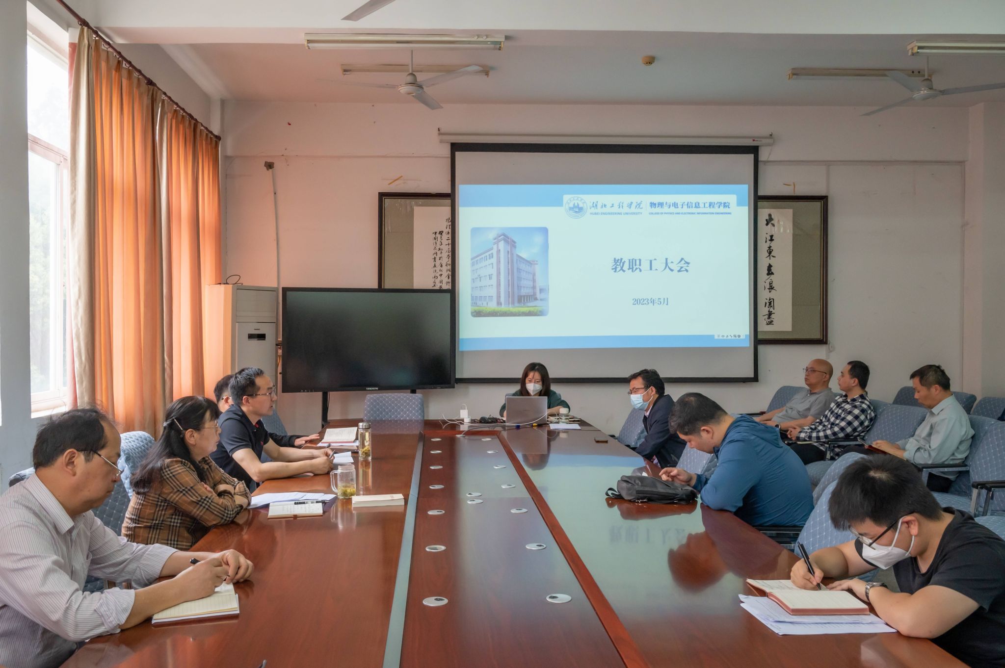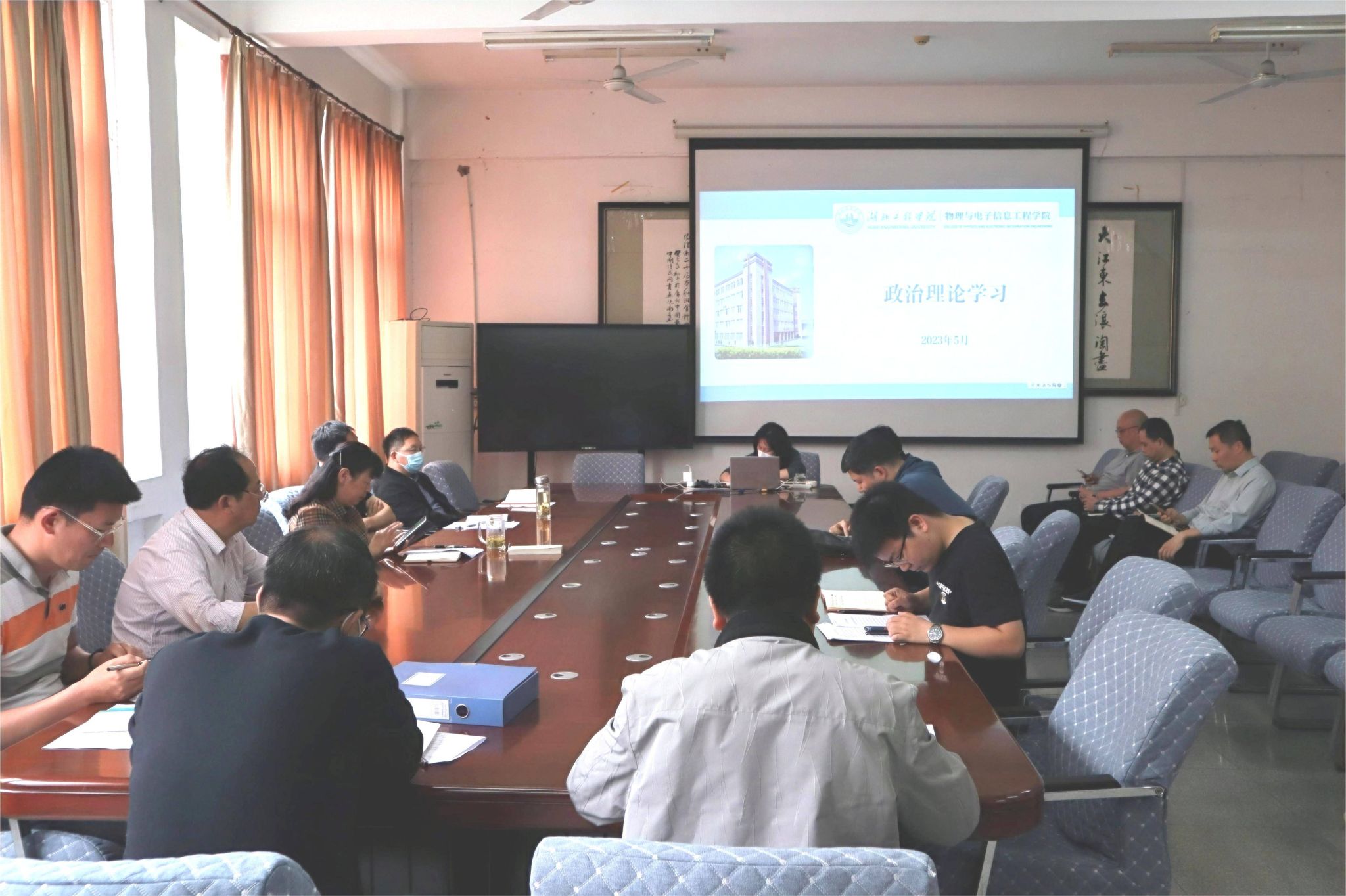 本网讯 5月25日,物电学院全体教职工在格物楼209会议室召开全院教职工大会,物电学院全体班子成员出席会议并发表讲话。大会分两个阶段,第一阶段是通报全院近期工作进展,第二阶段是政治理论学习。