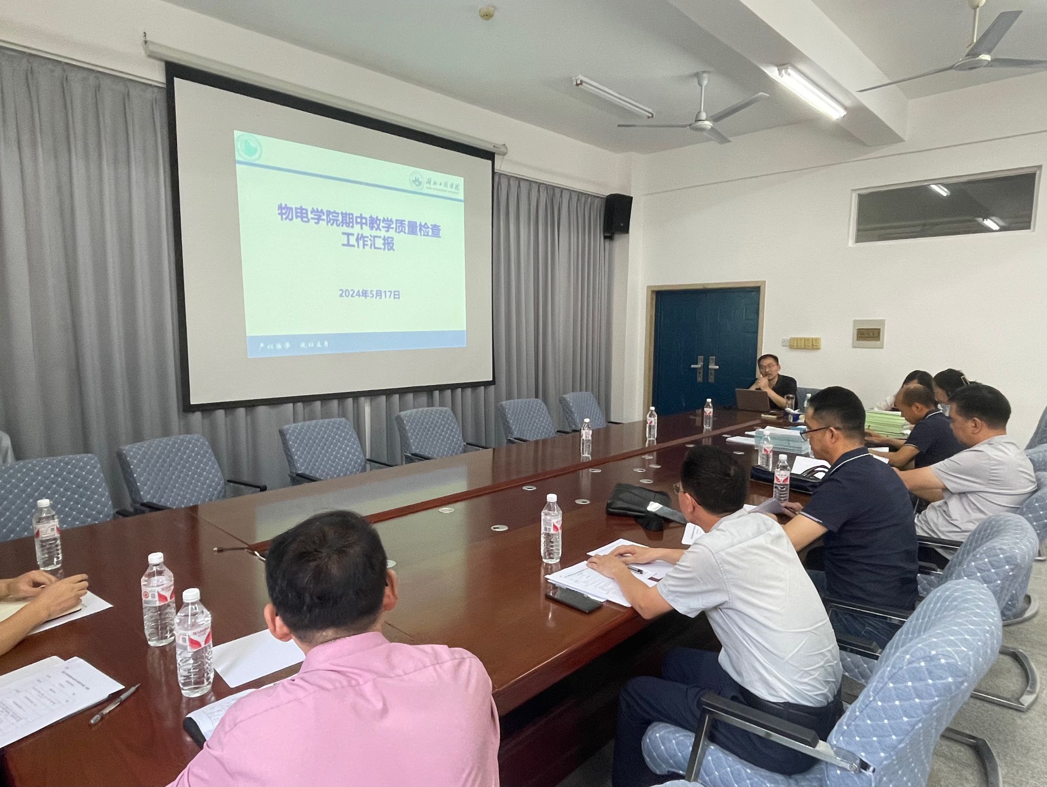 首先余华清院长代表学院对本次检查工作进行了全面汇报。他详细介绍了学院在教学管理、师资培养、课程设置及学生实习实践等方面的举措和成果。检查组成员认真听取了汇报,并深入了解了学院的教学运行情况。