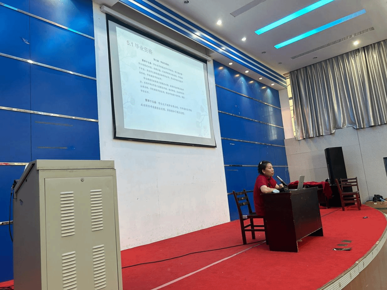 紧接着,张集彩老师详细讲解了毕业生在实习、就业、毕业论文撰写及学位申请等方面的注意事项,为同学们的毕业之路提供了坚实的保障。张老师的发言内容丰富、条理清晰,让在座的同学们受益匪浅。她强调了毕业论文的重要性,指出它是同学们四年大学生涯的总结,更是个人能力和专业素养的体现。同时,张老师还提醒同学们要关注就业市场变化,合理规划自己的职业生涯。