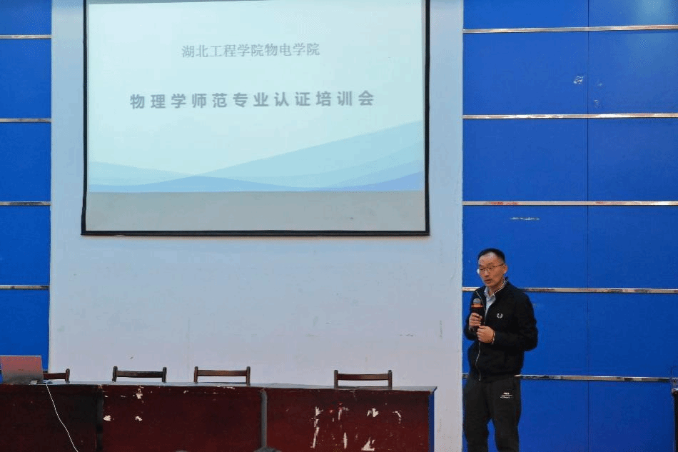 物理系主任聂长江根据工作安排,对全体参会人员进行了专业培训,简要介绍师范专业认证的基本知识、学校概况以及物理学专业培养过程及特点。随后,院长余华清讲话,指出师范专业认证工作对于提升学院的教育教学质量、推动高质量发展具有重要意义,要求全院上下统一思想、统一指挥、统一行动、抓好落实,确保师范专业认证工作顺利开展。