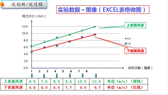6.利用风速仪测出数据,绘制出图像,定量加图形,使结果更有说服力和形象化。